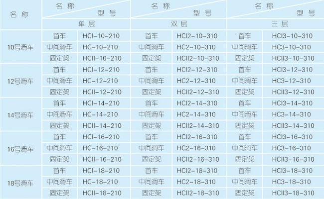 HC工字鋼電纜滑車為起重機(jī)小車供電的一種導(dǎo)電形式,它由行走輪、支架、托板組成,將軟電纜固定在托板上,由牽引架與電纜滑車同步,從而實(shí)現(xiàn)電纜供電目的。 HC工字鋼電纜滑車分為中載荷型、重載荷型和輕載荷型,因此滑車行走輪為Φ86、Φ73、Φ55的三種,承載能力≤50-150kg每類按托板層數(shù)分為單層、雙層、三層,每類中有三種形式,首端為電纜牽引車,終端為固定掛線架,中間為電纜滑車(見下圖)。